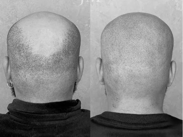 Le rendu final est naturel, élégant et discret, offrant l’effet visuel d’un crâne rasé parfaitement uniforme.